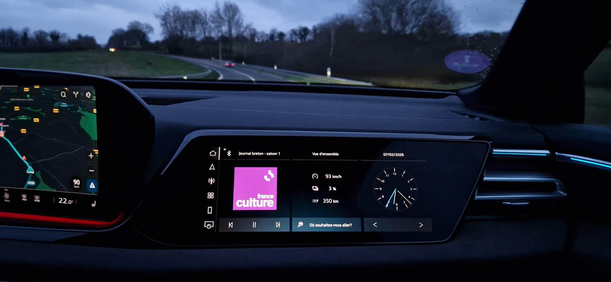 Sur le plan technologique, le système d’info-divertissement est performant et fluide, mais la dépendance accrue aux écrans tactiles pour des fonctions autrefois accessibles via boutons physiques (climatisation, raccourcis multimédia) peut parfois nuire à l’ergonomie, notamment en conduite, et je me demande également à quoi sert réellement l’écran passager lui aussi optionnel.En termes d’habitabilité, l’espace est satisfaisant à l’avant comme à l’arrière. En revanche, la présence de la batterie impacte directement le volume de coffre, qui reste correct mais inférieur à celui des versions thermiques.