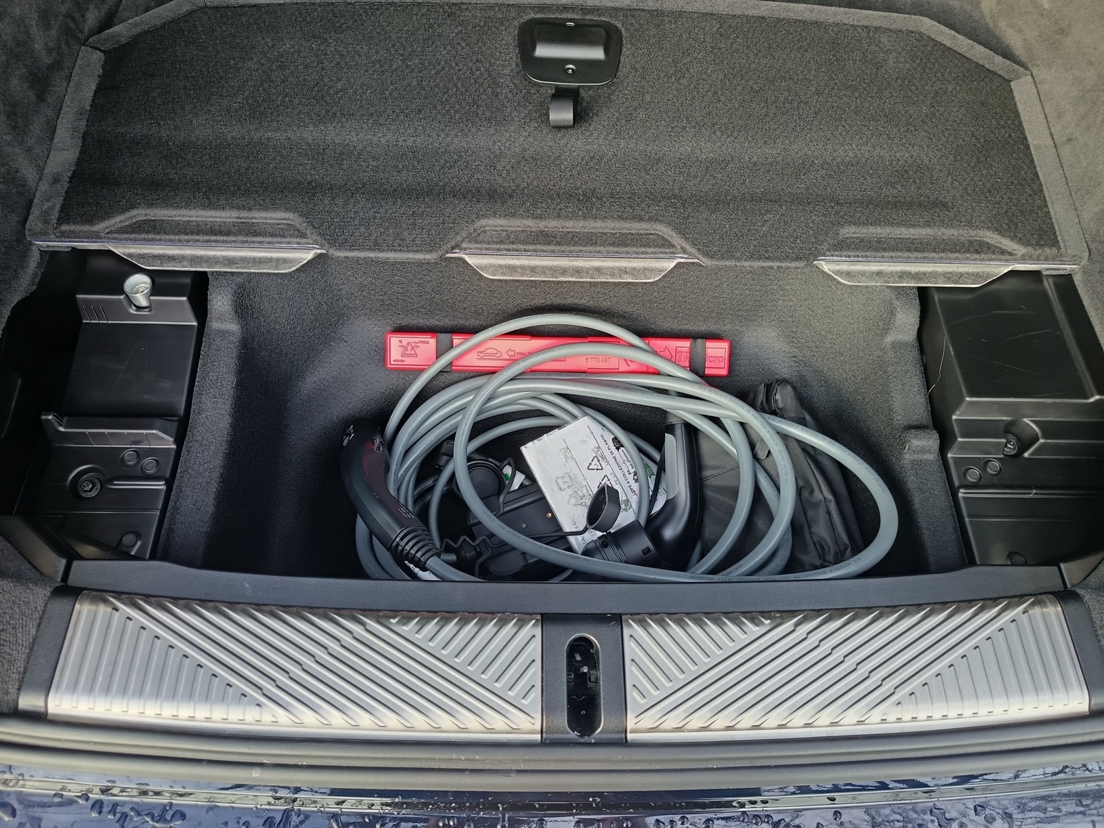 Le coffre constitue un véritable point fort. Avec 570 dm3 en configuration cinq places et jusqu’à 1.700 dm3 banquette rabattue, la BMW i5 Touring se montre pratique et bien pensée. Les formes régulières, le plancher plat et le double fond dédié au rangement des câbles facilitent l’usage au quotidien. L’absence de coffre avant reste néanmoins regrettable.