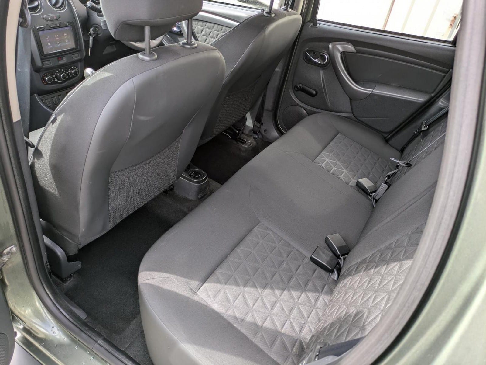 Côté moteur, le petit dCi de 85 chevaux prend sa tâche à cœur, s’en acquitte avec beaucoup de vaillance, mais montre ses limites. Il faut dire qu’avec deux personnes à bord, le Duster dépasse les treize cents kilos… Le moteur est bruyant à froid et à bas régime et se fait plus neutre en régime de croisière. Le freinage est assuré par des disques ventilés à l’avant et des tambours à l’arrière, économie oblige, et l’ensemble n’est pas pris en défaut. En conduite de nuit, les phares à double optiques assurent un éclairage de bon niveau, complété sur notre modèle d’essai par des antibrouillards à l’avant. Petit détail pour un véhicule qui se veut un peu baroudeur, il n’est pas équipé d’une boussole, ni d’un indicateur de température extérieure. A son bord, trouver la bonne position de conduite s’avère assez facile, avec un siège et un volant cuir réglables en hauteur. Les passagers arrière sont protégés des rayons de soleil trop inquisiteurs par des vitres latérales et arrière sur-teintées. Le coffre offre un volume de chargement très généreux, mais son seuil est haut. La roue de secours est située sous le plancher, assez loin et le pneu est protégé par un panneau en plastique.