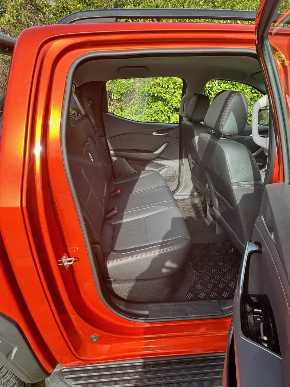 Ce pick-up fait partie de ce que l’on appelle un « double cabine » qui offre ainsi quatre portes et un accès aisé à tous les passagers, et de surcroît une belle habitabilité. Il est vrai que son gabarit est imposant, et même s’il reste conforme à ce que la concurrence propose, il en impose avec ses 5,395 mètres de long et ses 1,96 mètre de large… Il s’agit clairement d’un beau bébé, qui soigne sa ligne et son look. Son énorme calandre moderne renforce son caractère baroudeur.