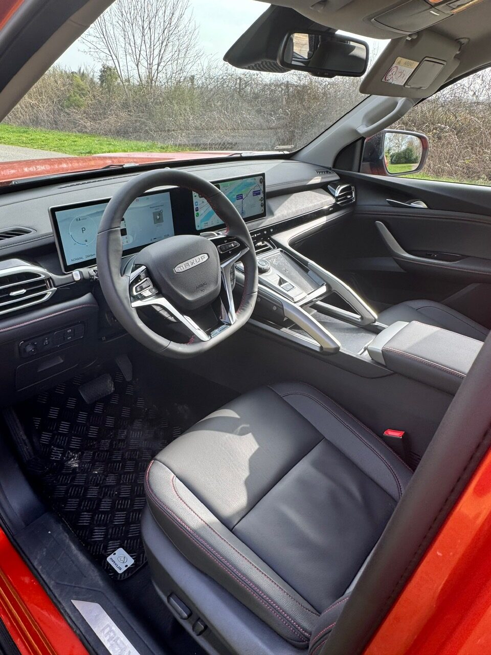 Des palettes au volant permettent également de passer en mode manuel sur les difficultés rencontrées sur le terrain pour trouver le meilleur passage. De manière plus surprenante, MAXUS ne propose pas de blocage de différentiel qui reste quand même l’arme absolue lorsqu’on se retrouve dans des situations plus complexes (pour les néophytes le blocage de différentiel est un dispositif essentiel pour garantir une bonne adhérence sur des terrains difficiles. Le différentiel permet aux roues d’un même essieu de tourner à des vitesses différentes, ce qui est nécessaire pour la traction dans les virages. En cas de perte d’adhérence sur une roue, le blocage empêche celle-ci de patiner, forçant les deux roues de l’essieu à tourner ensemble.)