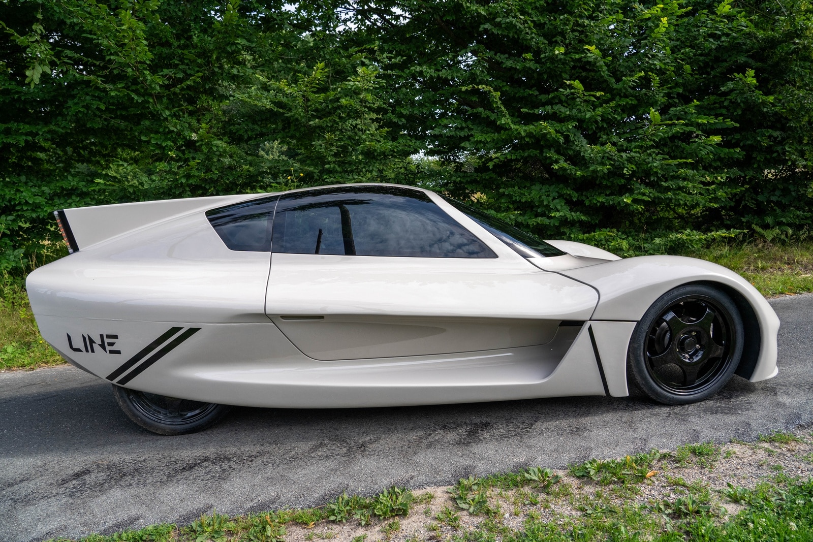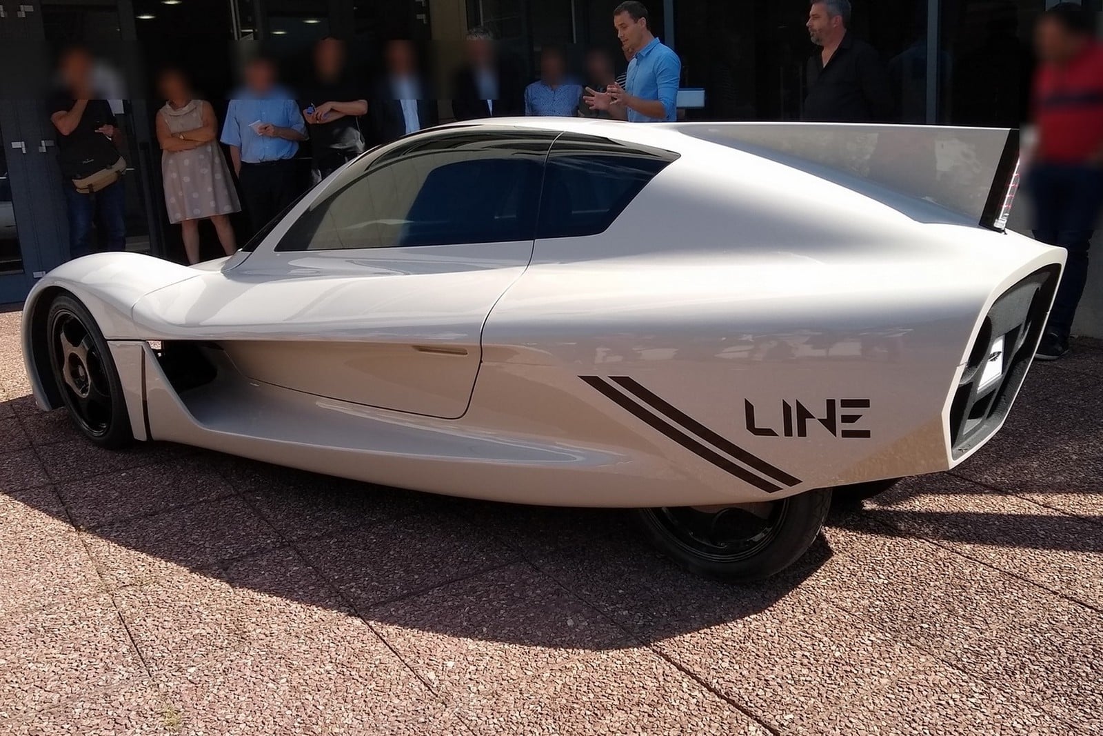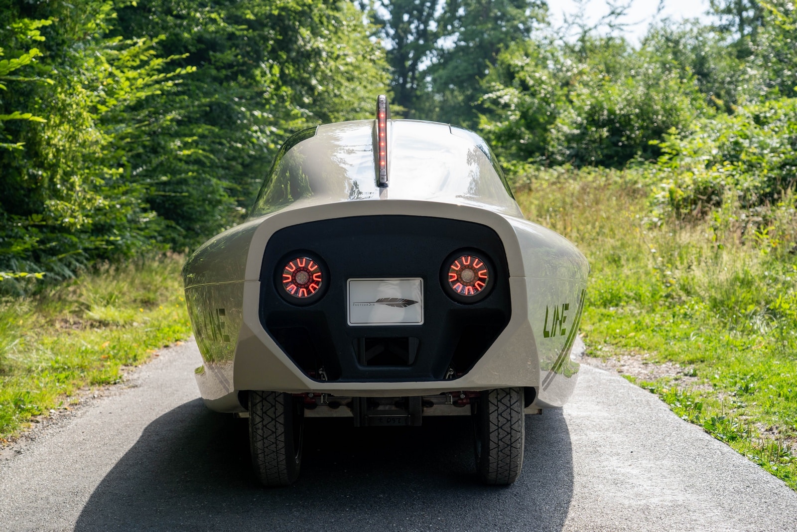 La surface frontale : Pour optimiser le SCx, produit de la surface frontale (S) par le coefficient aérodynamique (Cx), l’habitacle dispose de deux places côte à côte en décalé, le passager étant légèrement en retrait du conducteur. LINE a un SCx de 0,28.